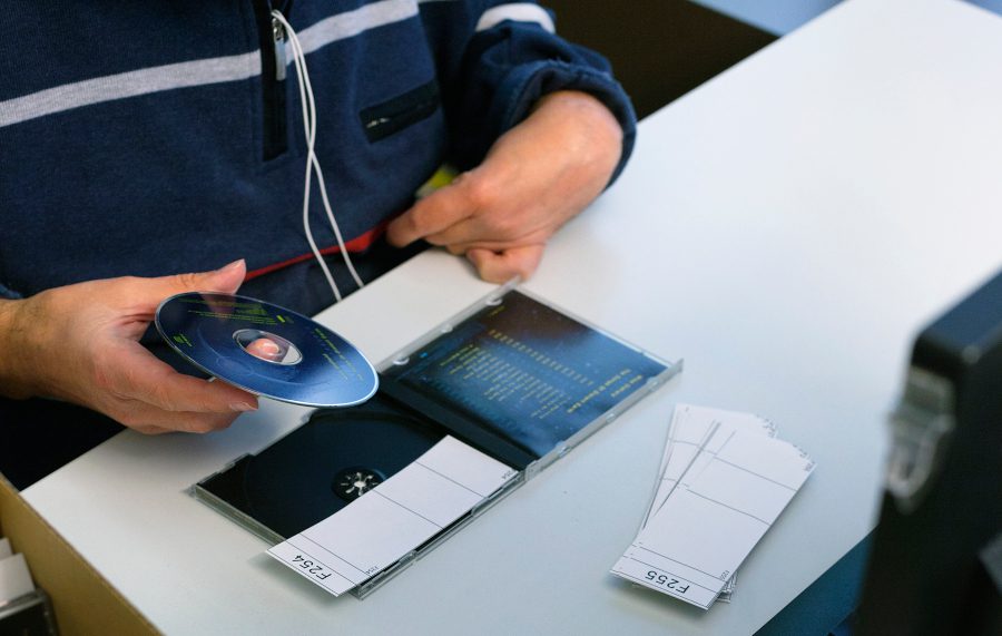Bei Contenti erhalten gespendete CDs und DVDs eine zweite Chance: Unsere Mitarbeitenden mit Beeinträchtigung prüfen diese sorgfältig auf ihren Zustand, fotografieren sie, verfassen eine Beschreibung und stellen sie auf Ricardo online.